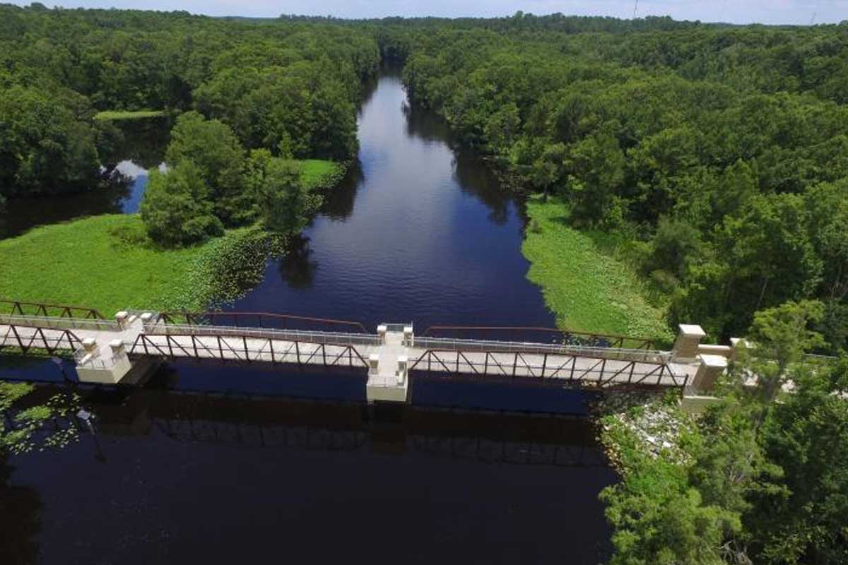 Born from an incomplete barge canal that would have connected the Atlantic Ocean to the Gulf of Mexico through northern Florida, the Marjorie Harris Carr Cross Florida Greenway is now a protected greenway with diverse wildlife and a multi-use trail that spans 300 miles.