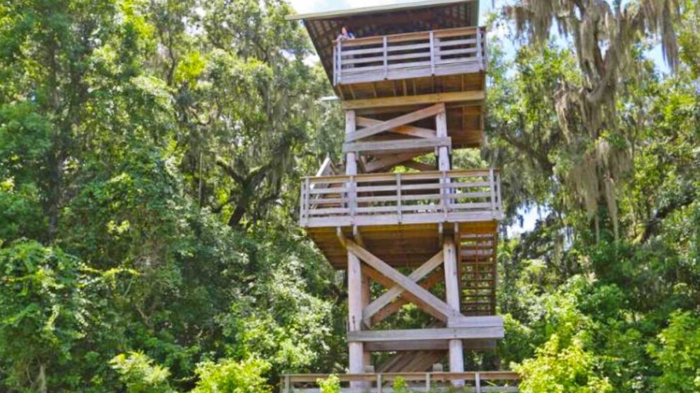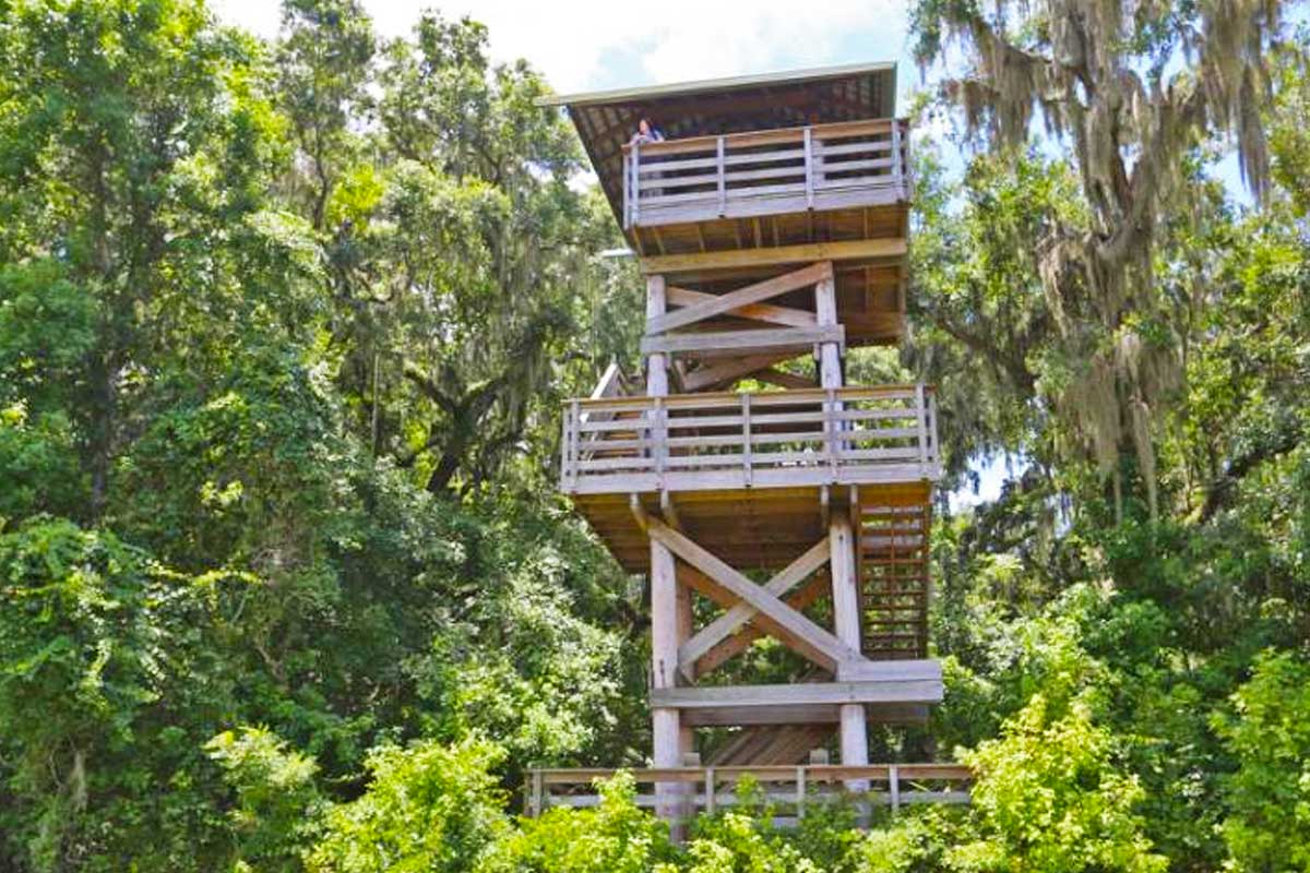 Paynes Prairie Preserve State Park offers an amphitheater, shower stations, a playground, and campfire circles, among other amenities. Bicycling, hiking, fishing, and geo-seeking are some of the activities for guests to take part in while at the park.